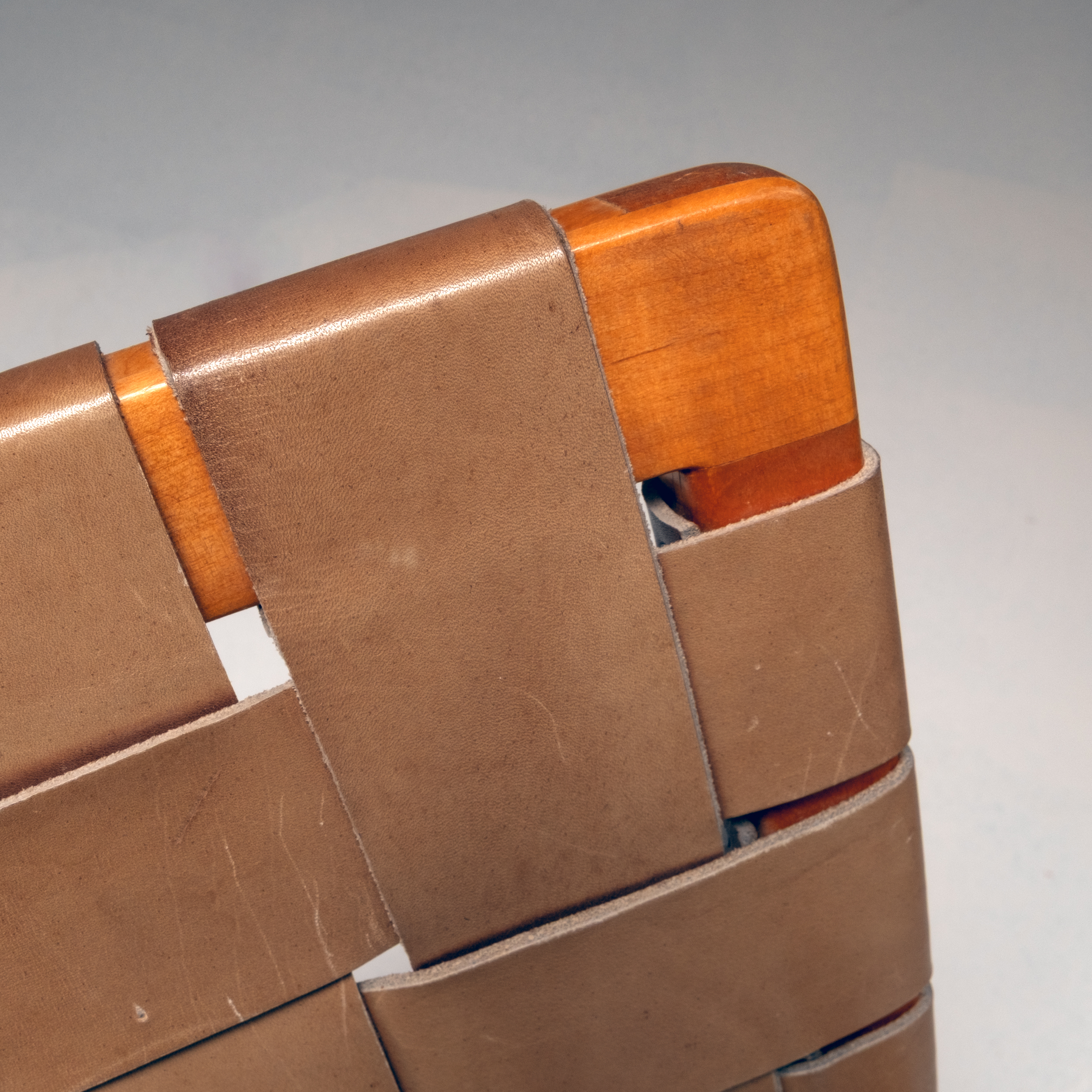 Mathsson created chairs featuring webbing as a lighter alternative to the heavier springs, stuffing, and upholstery found in pricier easy chairs. To ensure maximum comfort, he designed a new type of frame, contoured to follow the natural curves of the human body, allowing the chair to adapt to the person sitting in it rather than the person adapting to the chair.