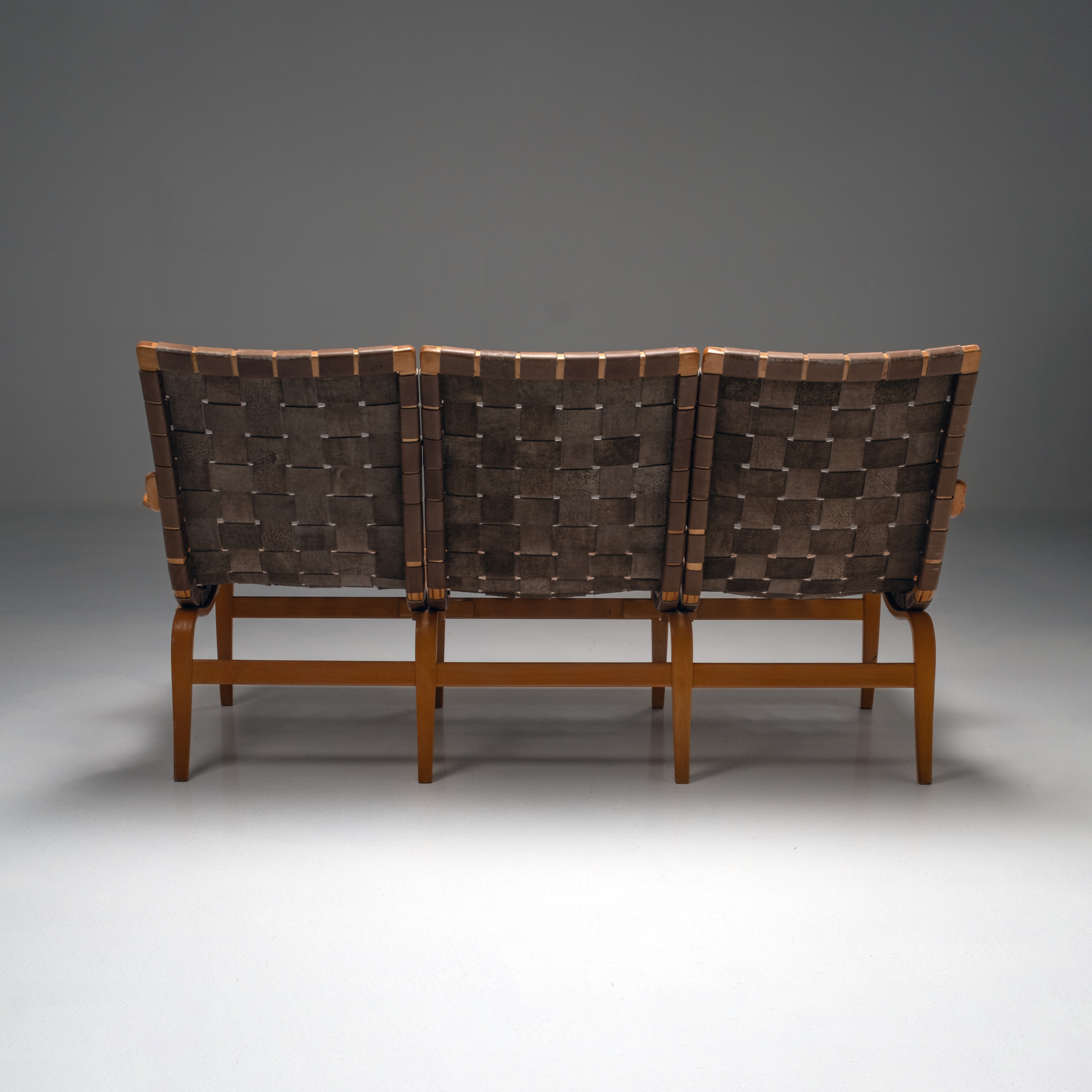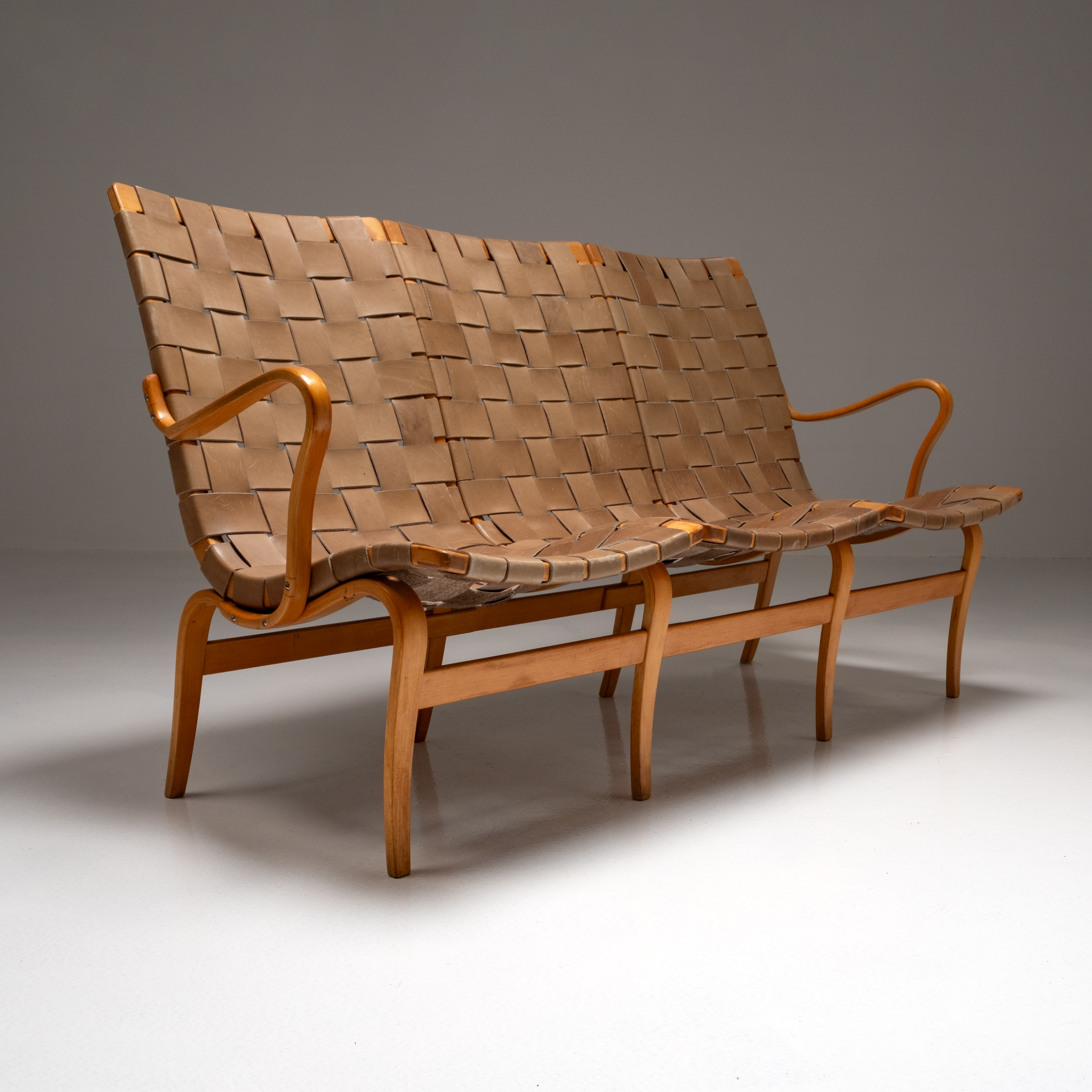 Bruno Mathsson’s “Eva” sofa, designed in the 1940s, is an exemplary piece that showcases his mastery of form, function, and material innovation. This iconic sofa is characterized by its clean, organic lines and ergonomic design, reflecting Mathsson’s deep commitment to user comfort and practicality. Constructed with a bentwood frame and often upholstered in leather, the Eva sofa exemplifies the seamless integration of traditional craftsmanship with modernist aesthetics. Its lightweight yet sturdy structure demonstrates Mathsson’s skill in utilizing bent and laminated wood techniques to create furniture that is both aesthetically pleasing and highly functional. The Eva sofa’s timeless design has ensured its enduring popularity, making it a staple in both residential and commercial spaces, and a testament to Mathsson’s lasting impact on modern furniture design.