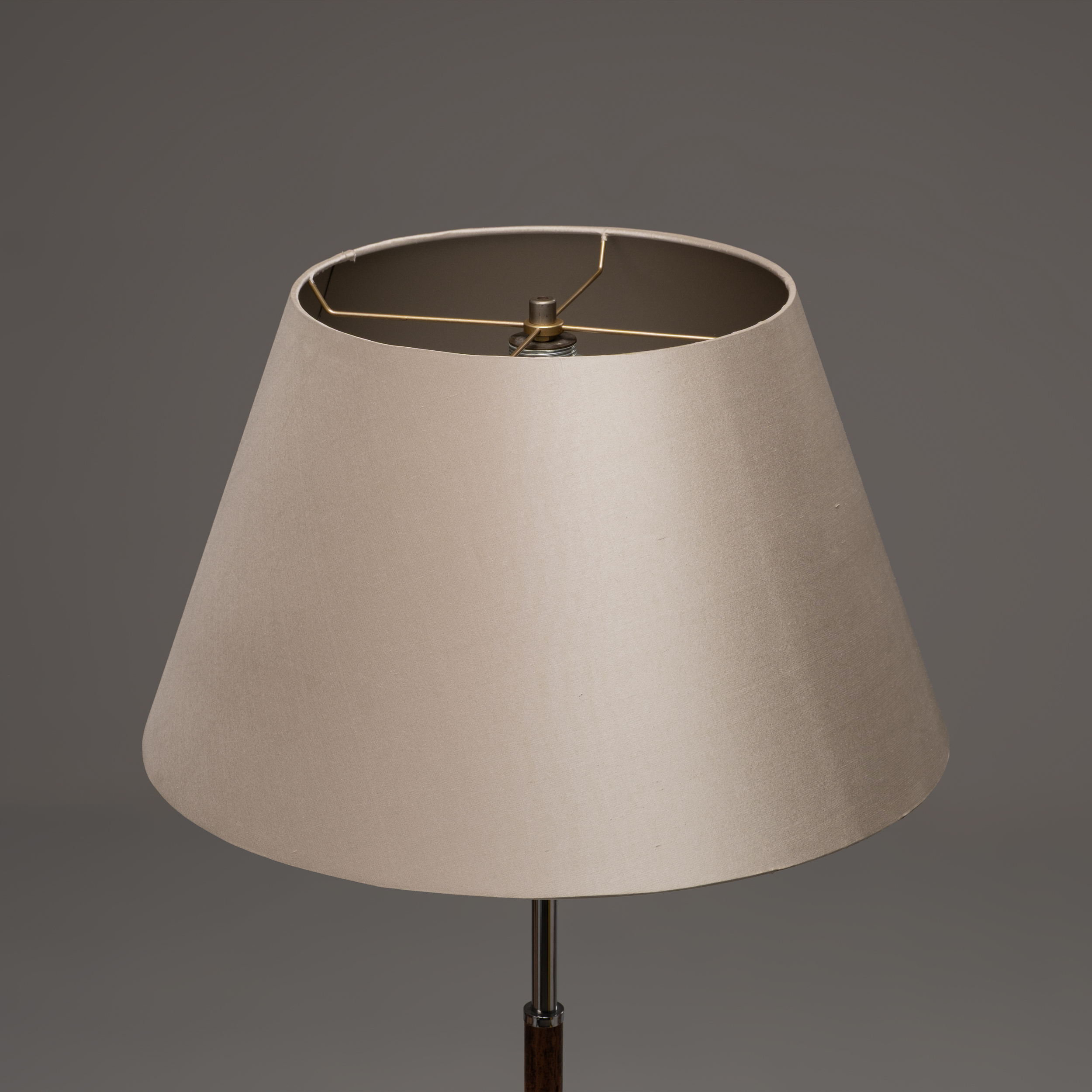 Chrome and Teak Floor Lamp with Silk Shade