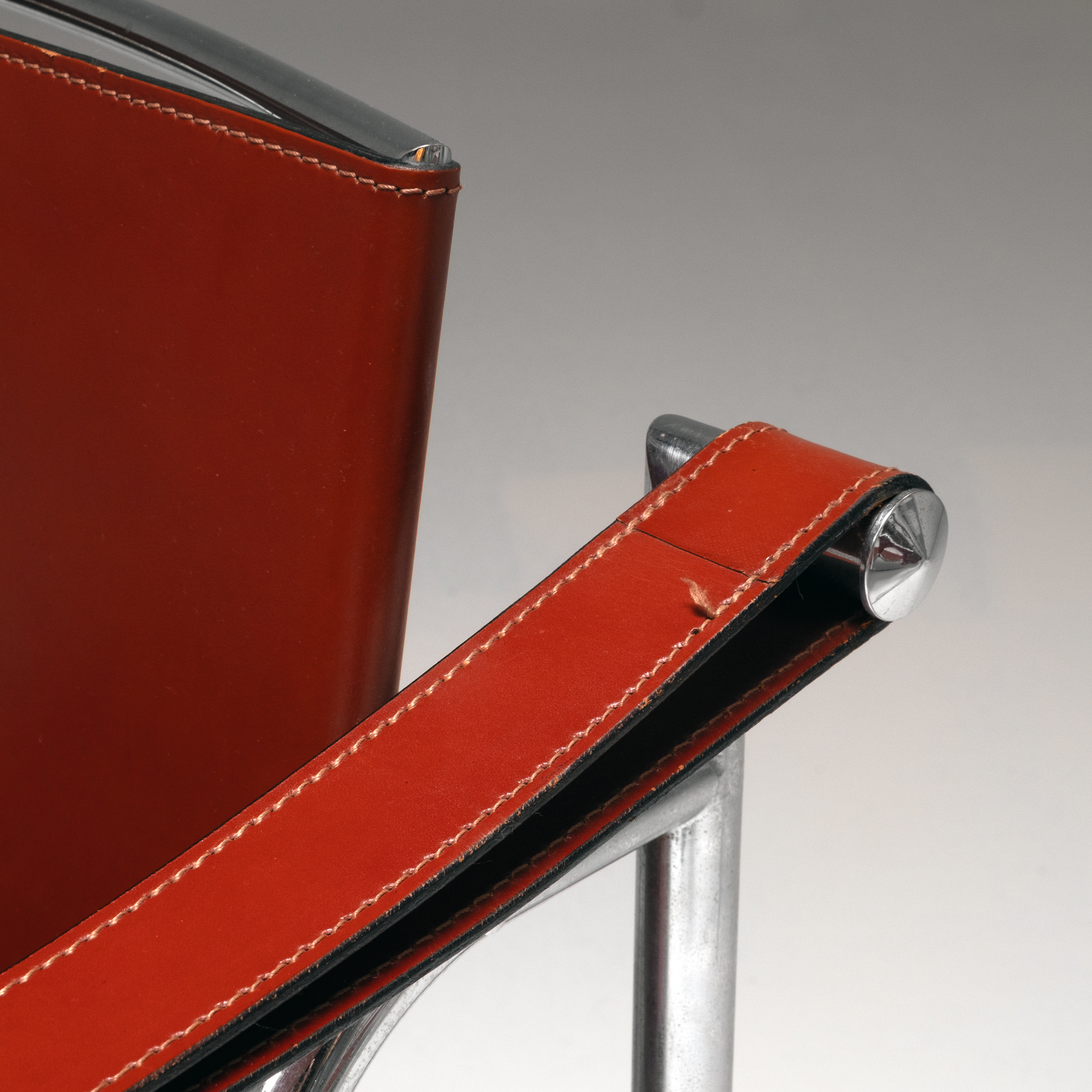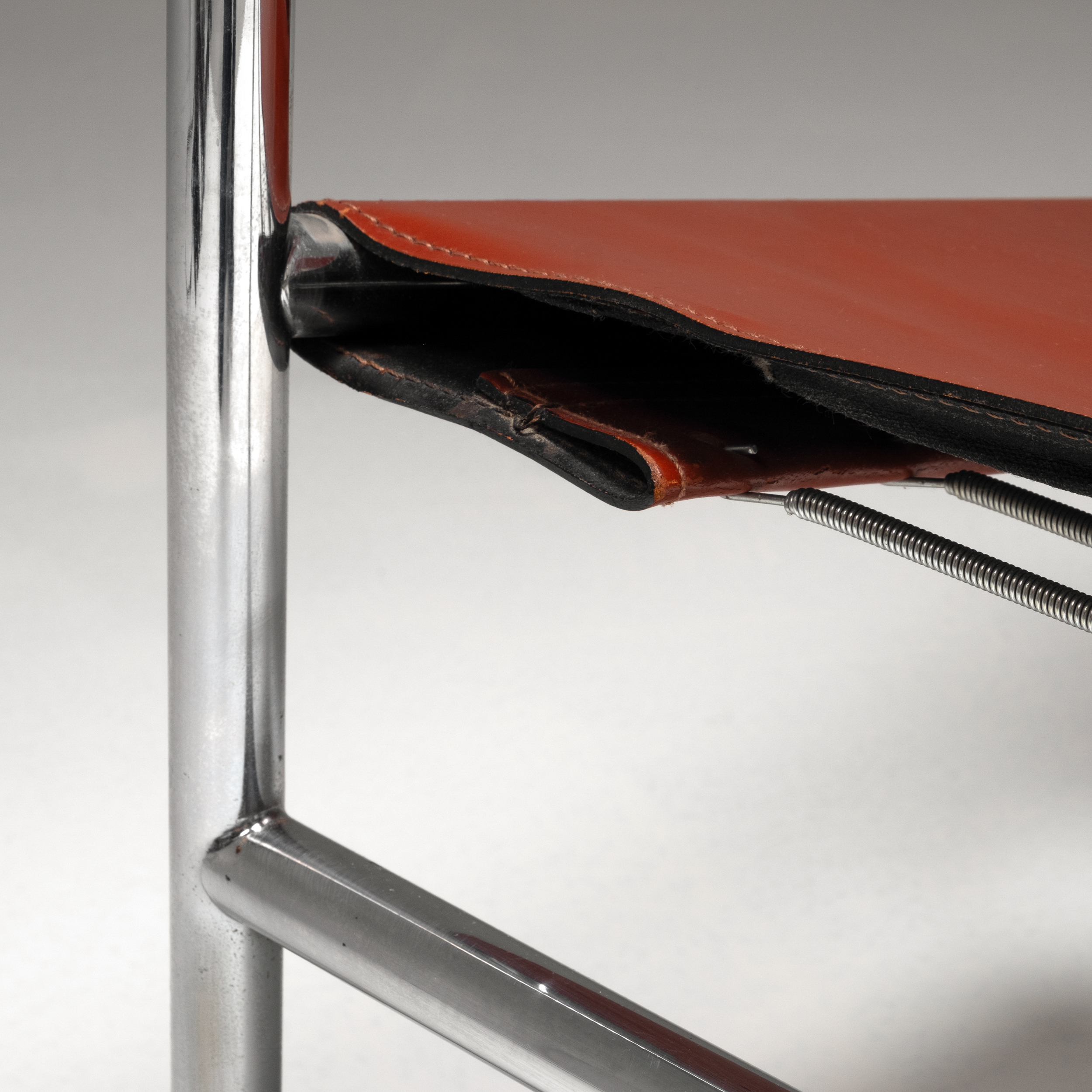 The Fauteuil à dossier basculant (LC1), designed in 1928 by Le Corbusier, Pierre Jeanneret, and Charlotte Perriand, represents the perfect union of architectural clarity and human comfort. With its minimalist tubular steel frame and elegantly suspended leather seat, the LC1 captures the radical beauty of early modernism — where structure and proportion take center stage.