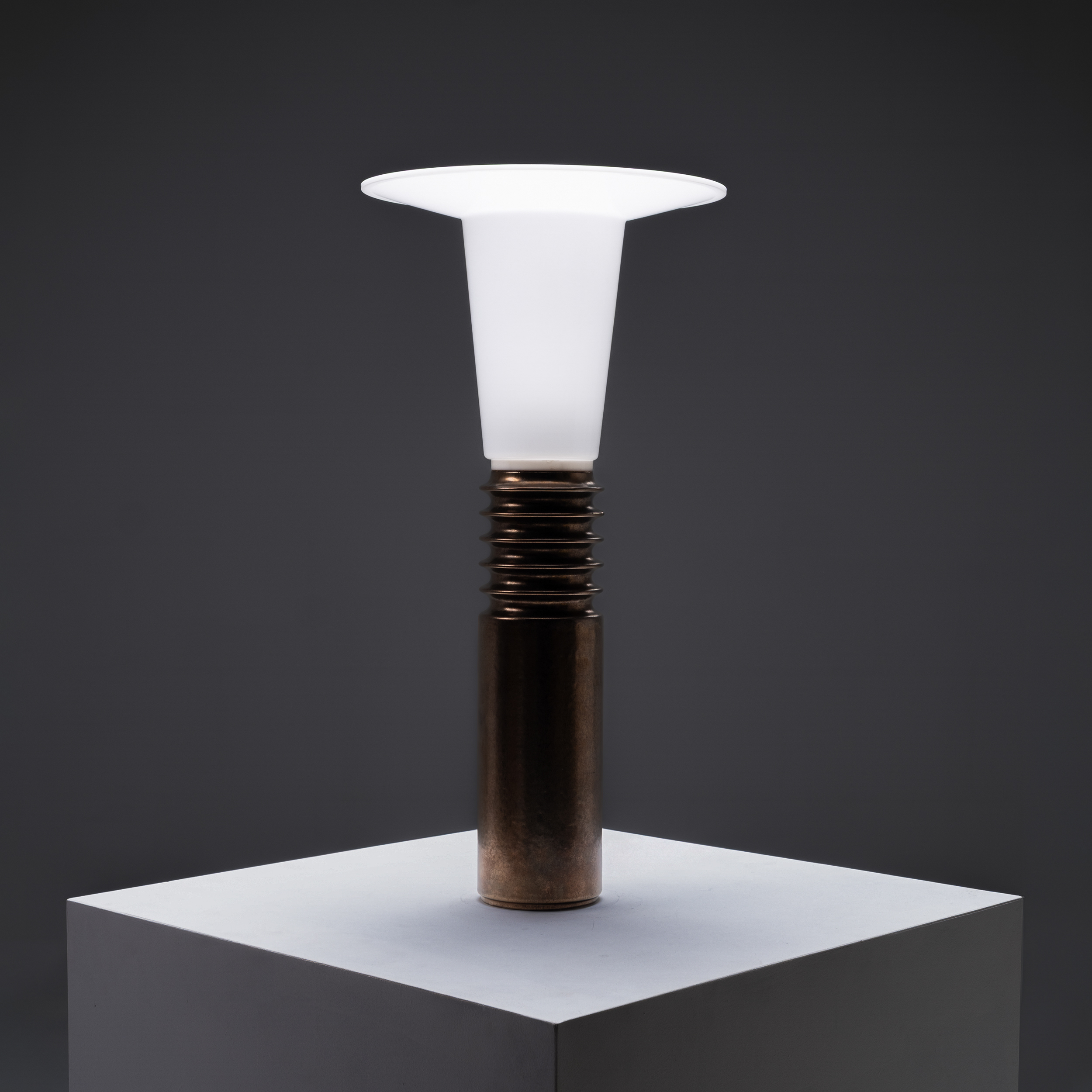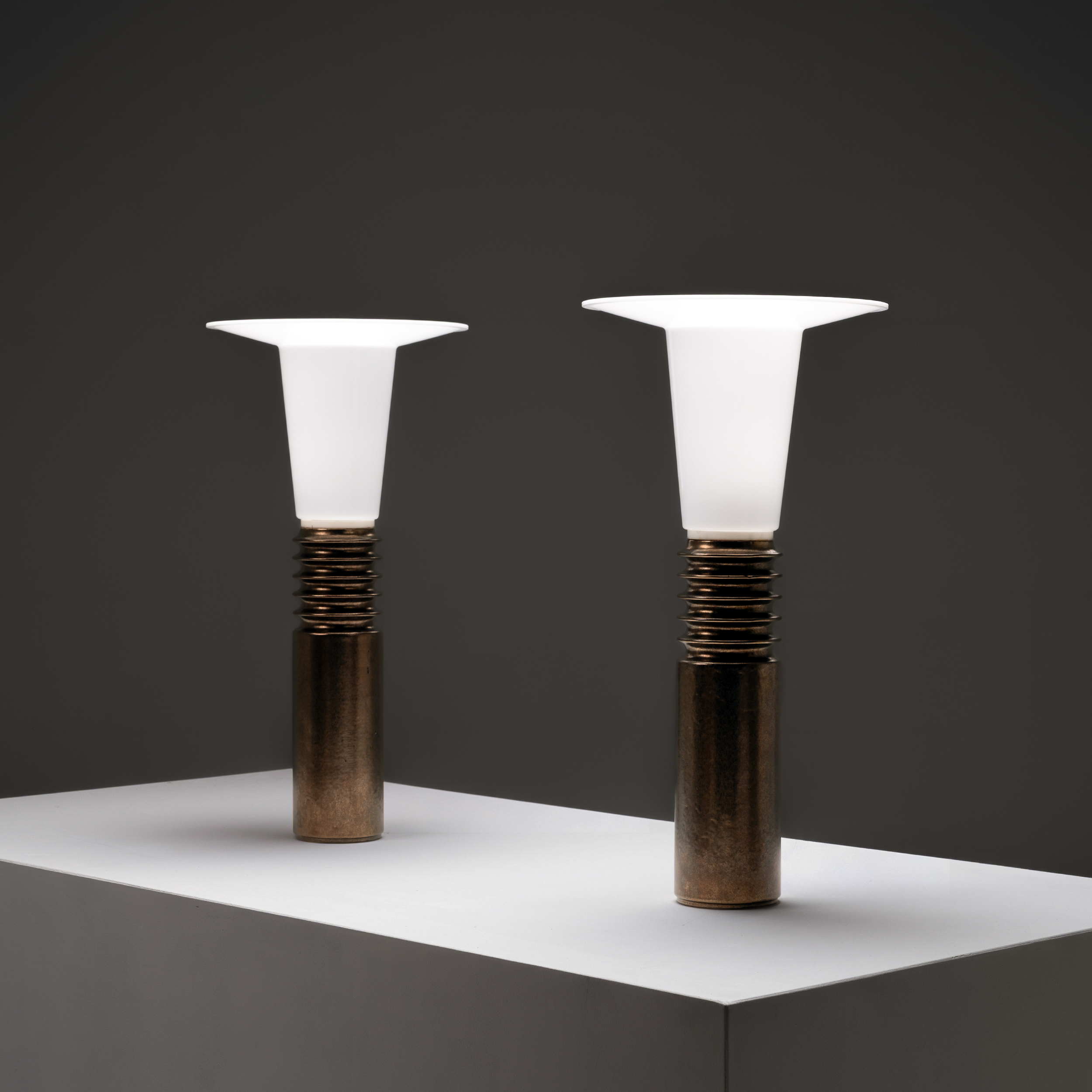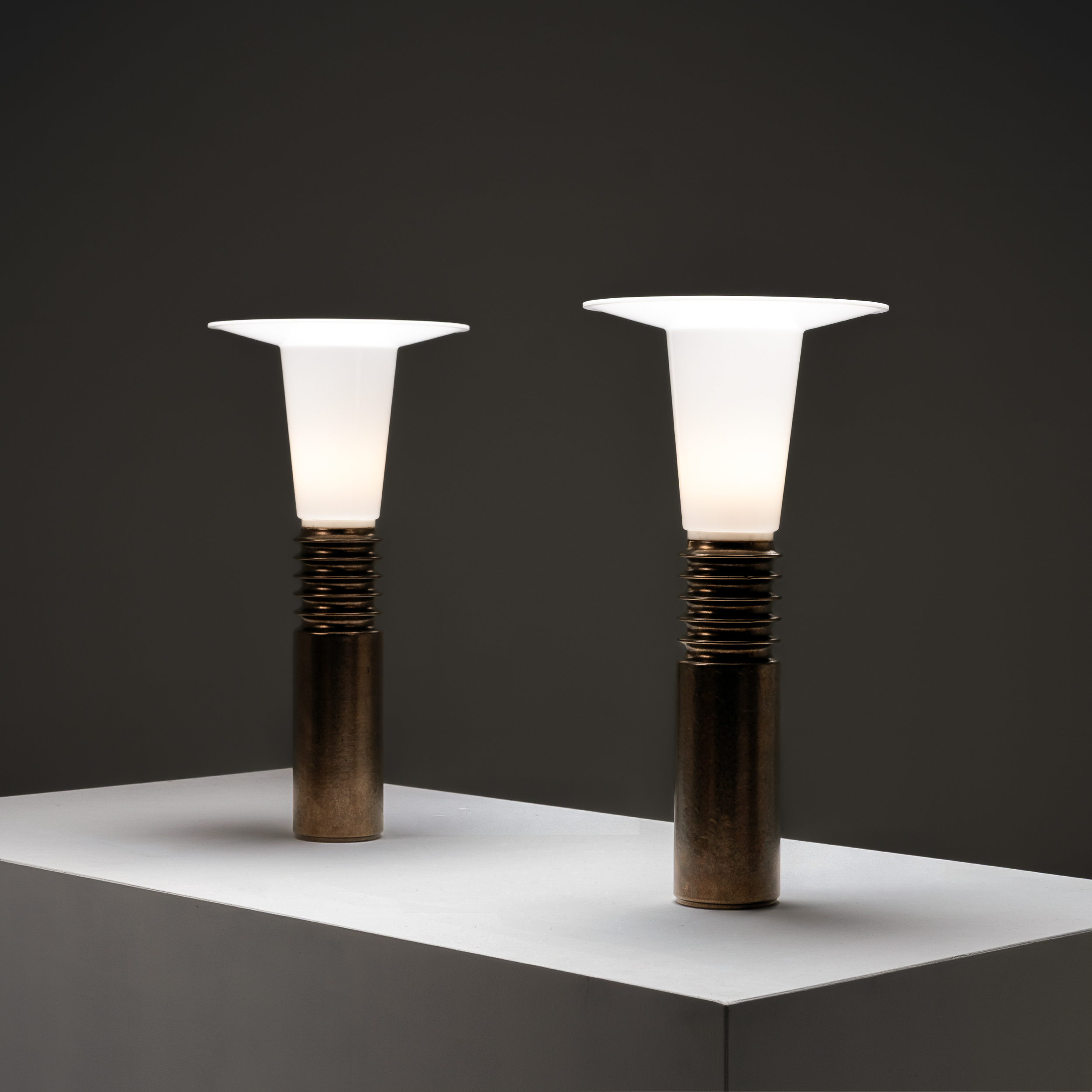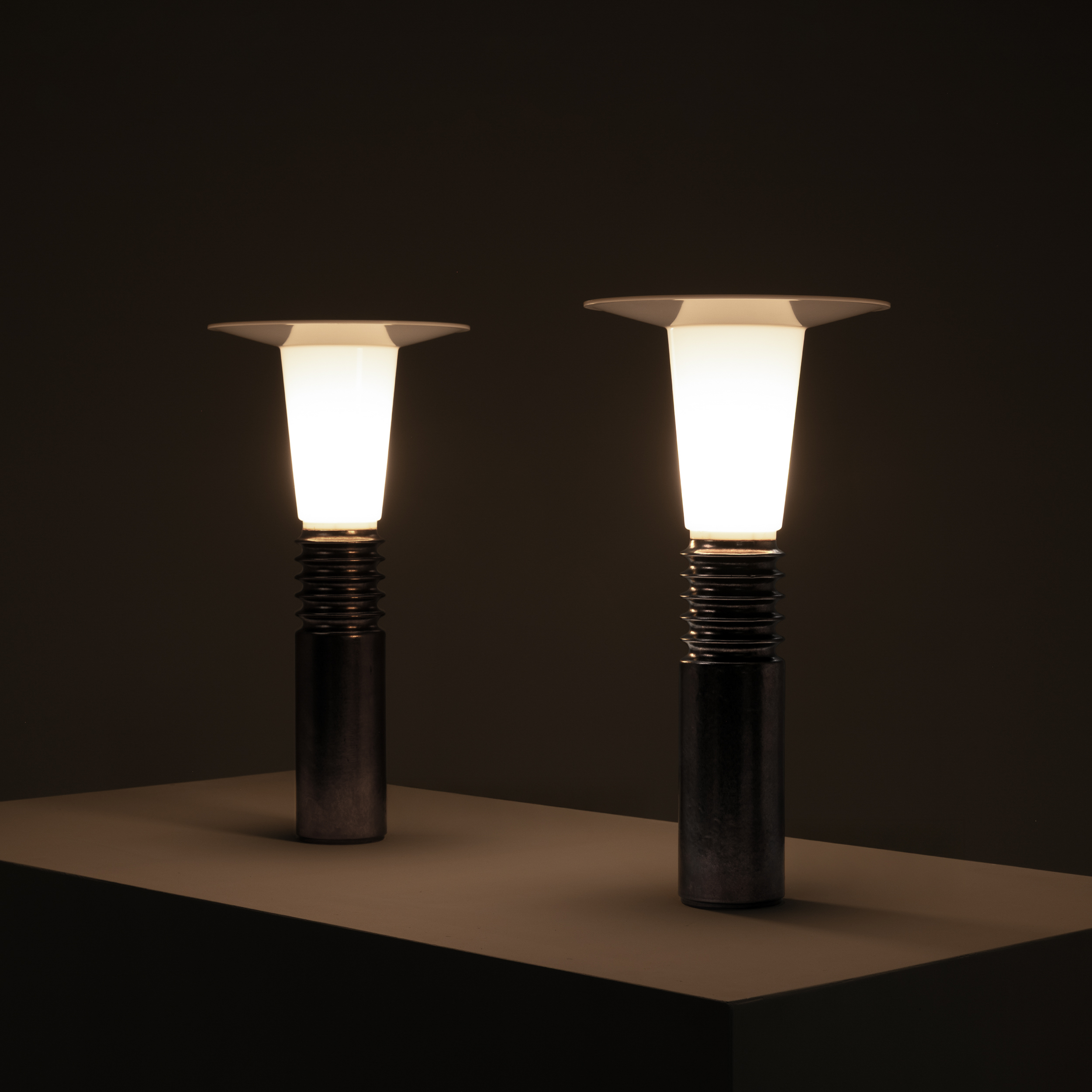 These sculptural and highly distinctive lamps perfectly capture the forward-thinking spirit of Scandinavian design from the late modernist era, where form, material, and light are reduced to their purest expression.