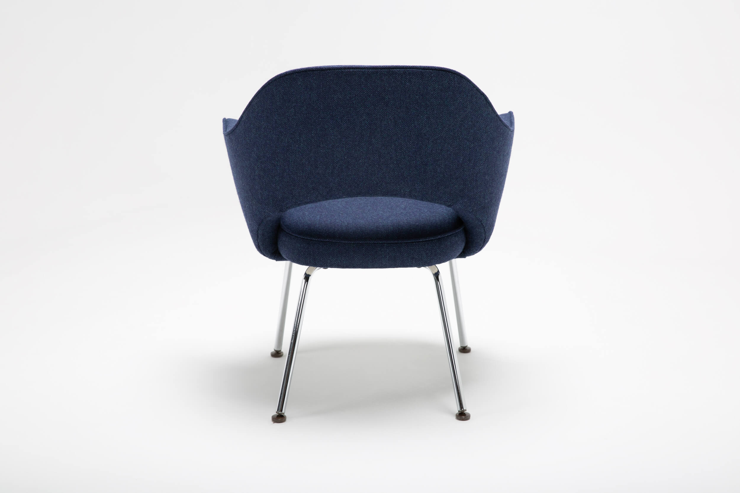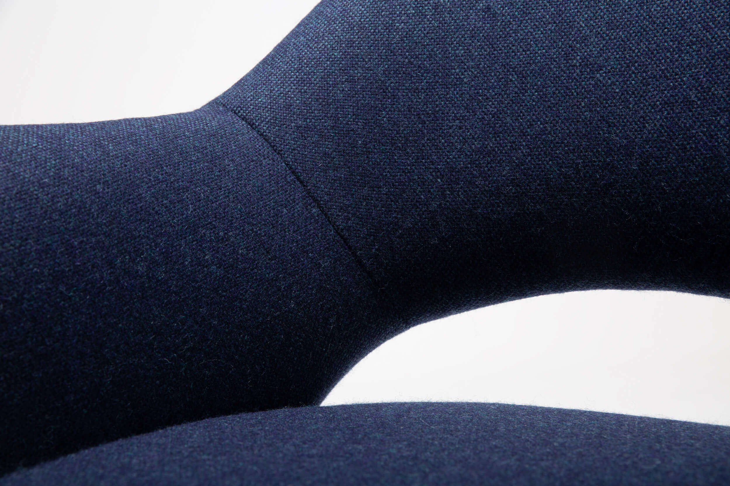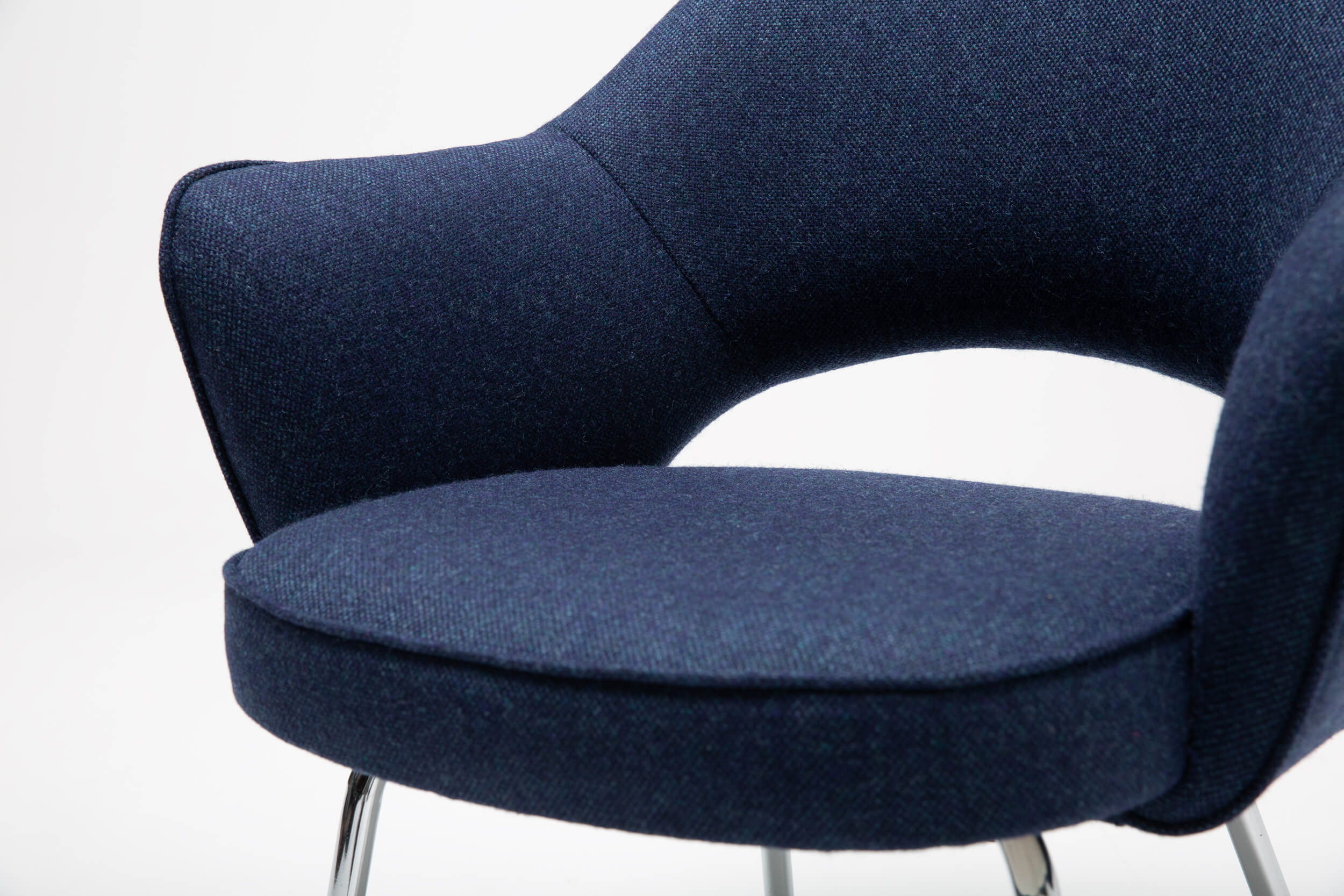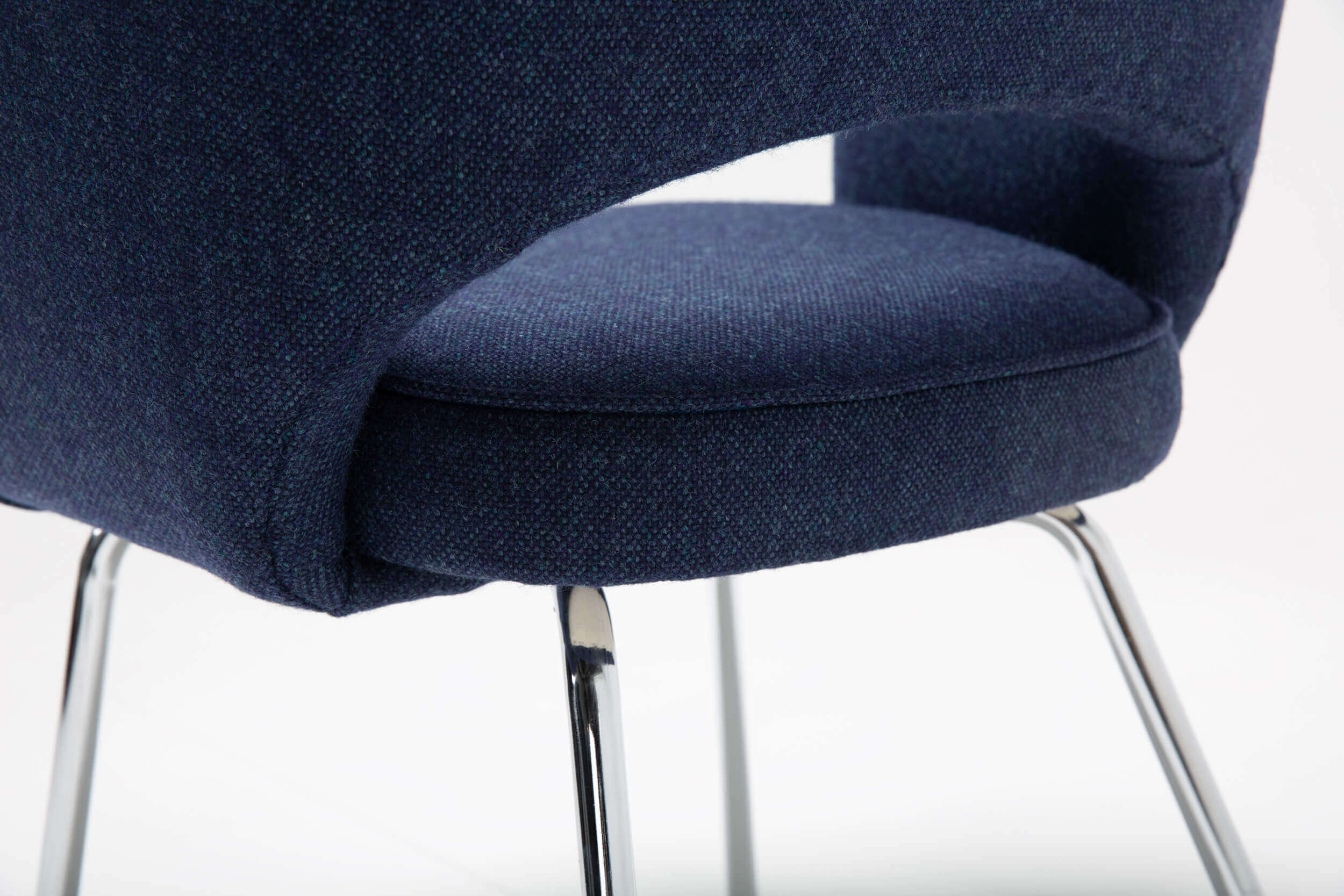 Who doesn’t feel like a boss in this Saarinen-designed chair? For over 70 years, this piece (model 71) has been popular in executive board offices and residential interiors. This design instantly upgrades any dining room. All four are reupholstered in premium royal blue fabric by Bute with an all-new foam interior. The chair asks to be cuddled. Each has armrests, so you’re assured of long and comfortable dinner parties.