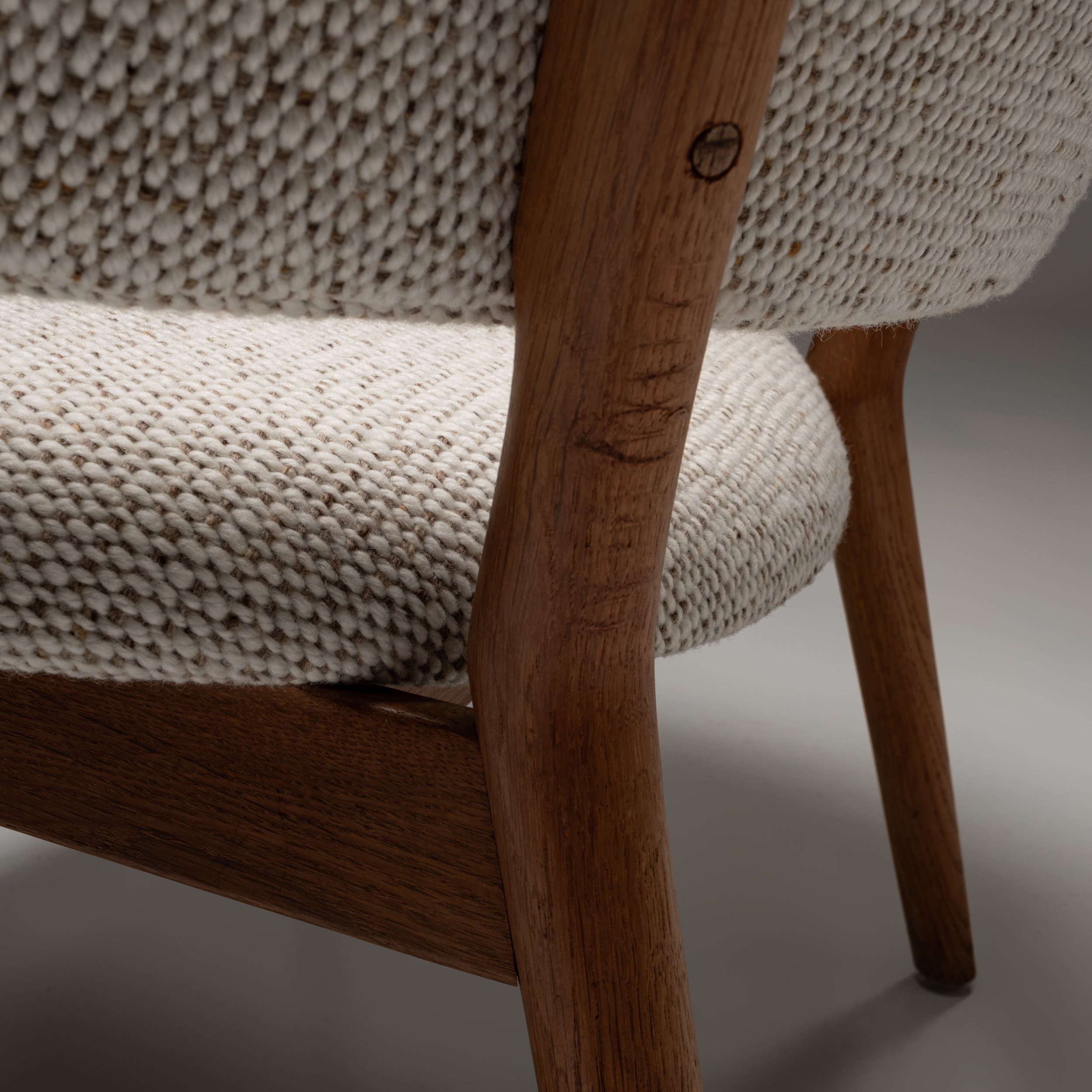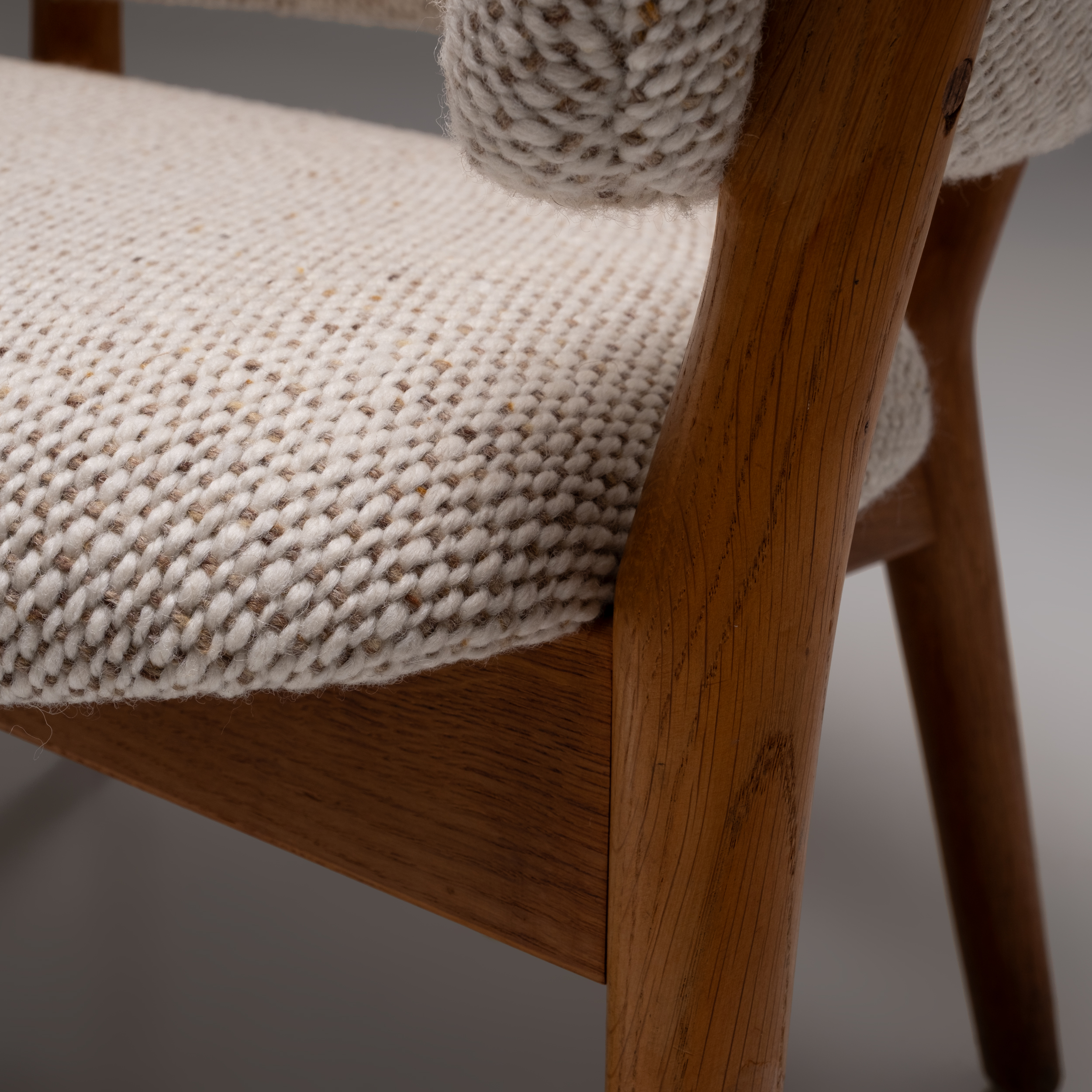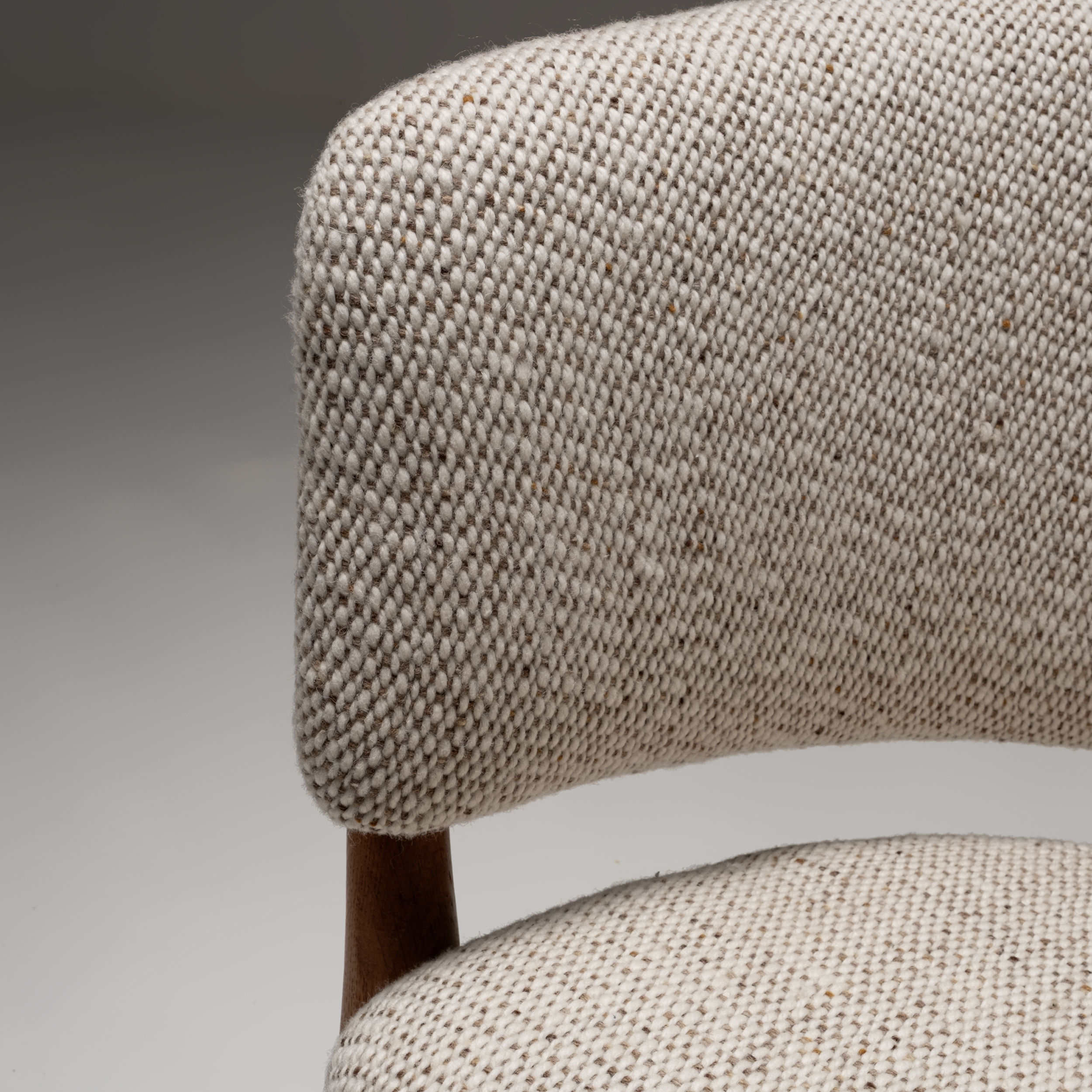 The seats and backs are upholstered in Danish hand-woven wool fabric, adding texture, warmth, and a tactile contrast to the oak. Every element of the ND-83 reflects Ditzel’s mastery of form, craftsmanship, and material harmony. A rare and timeless set that works equally well as a functional seating solution and as a collectible design statement.