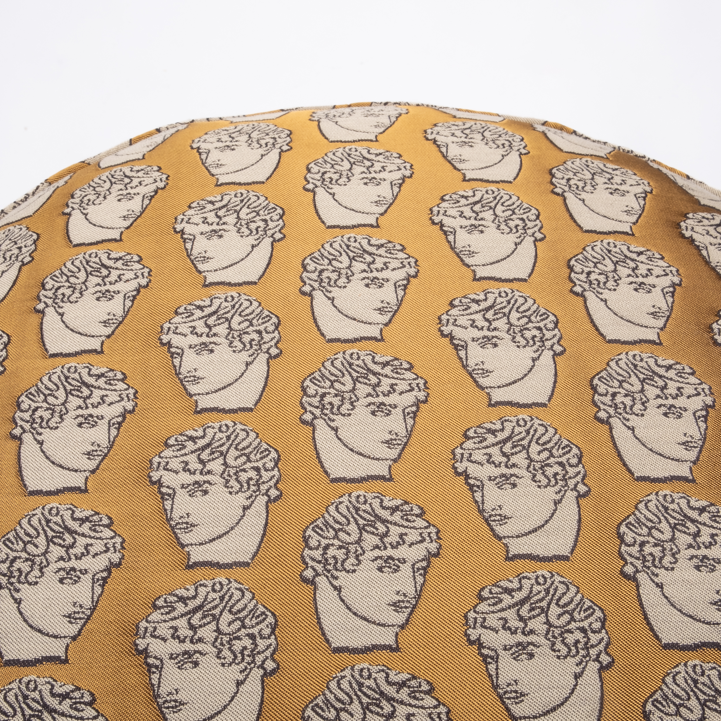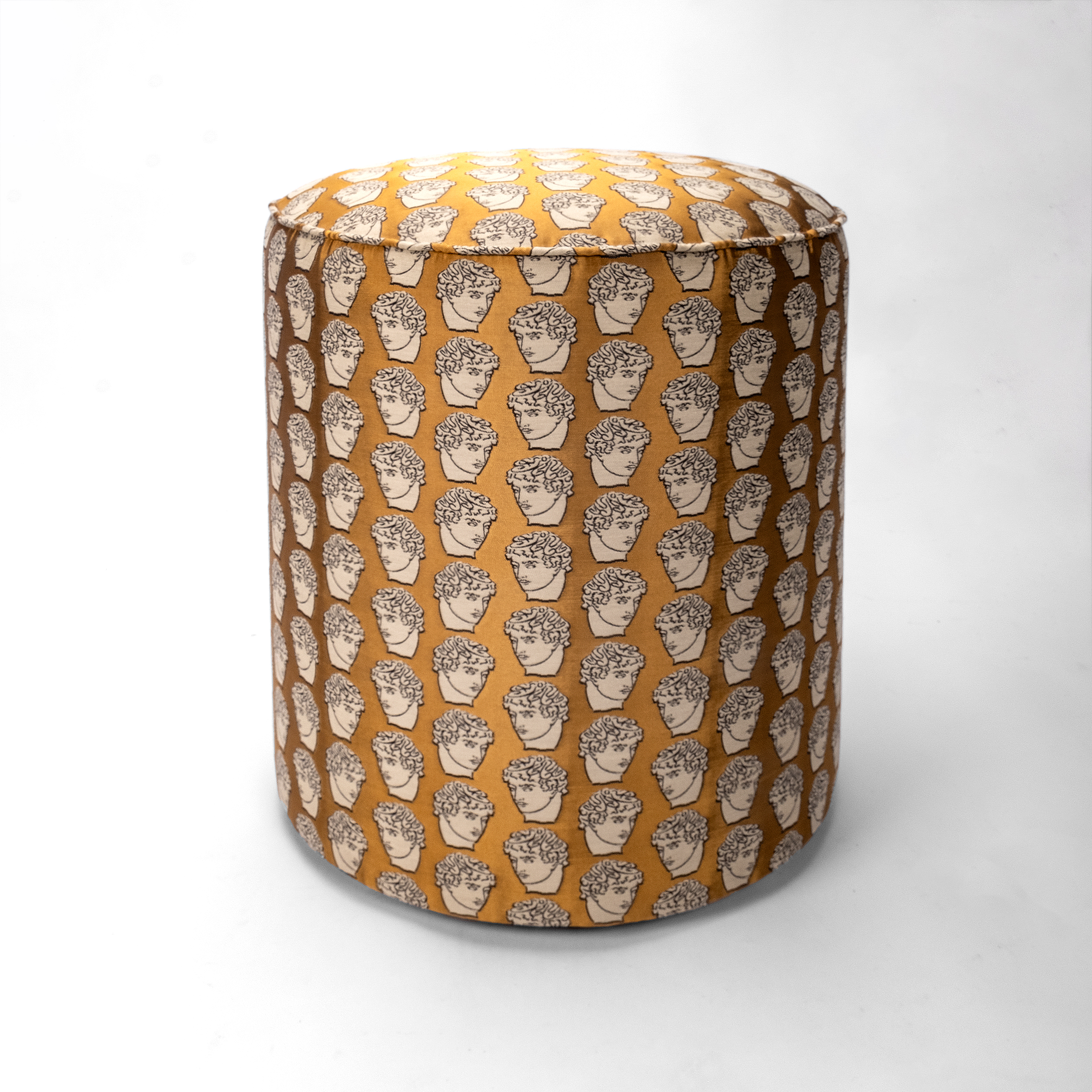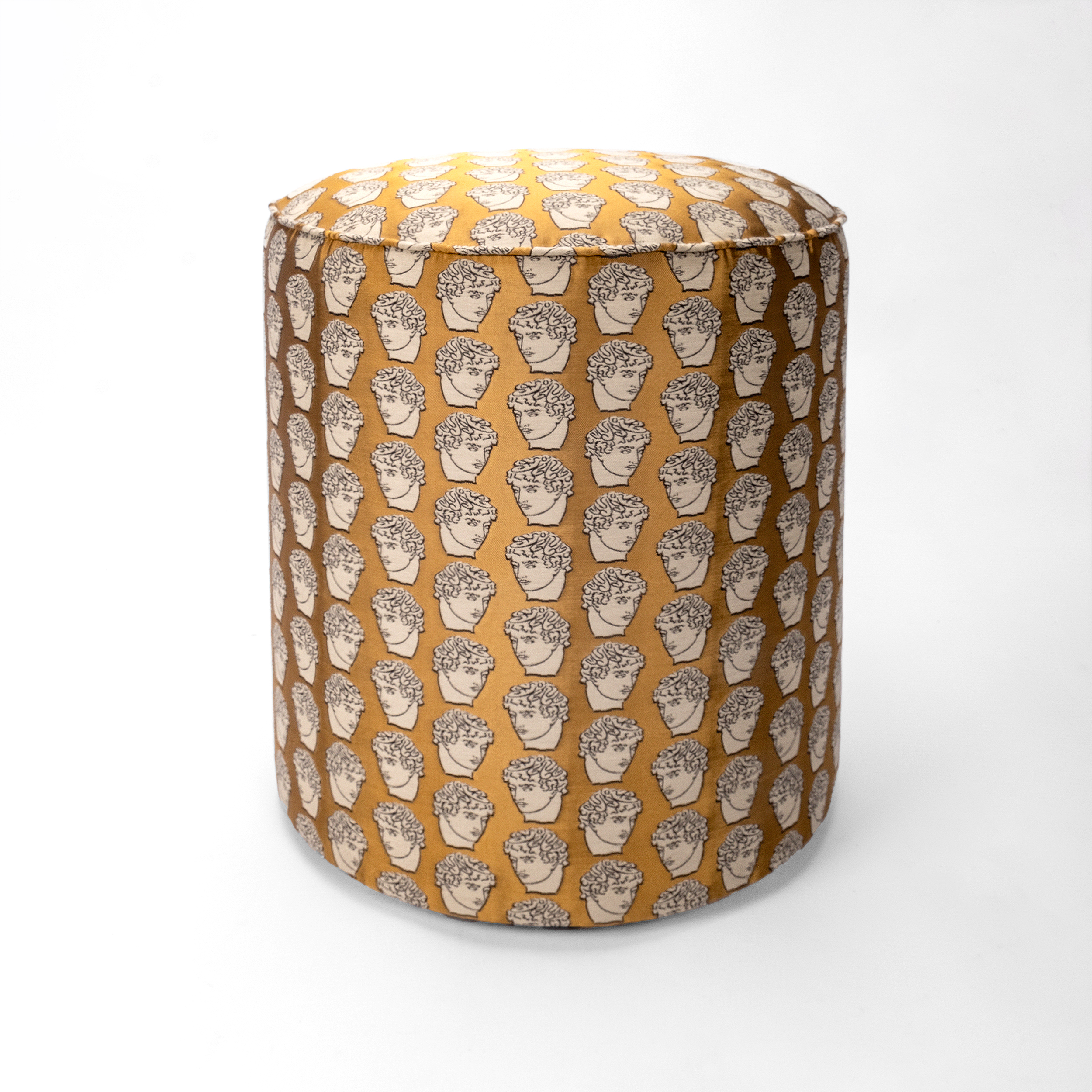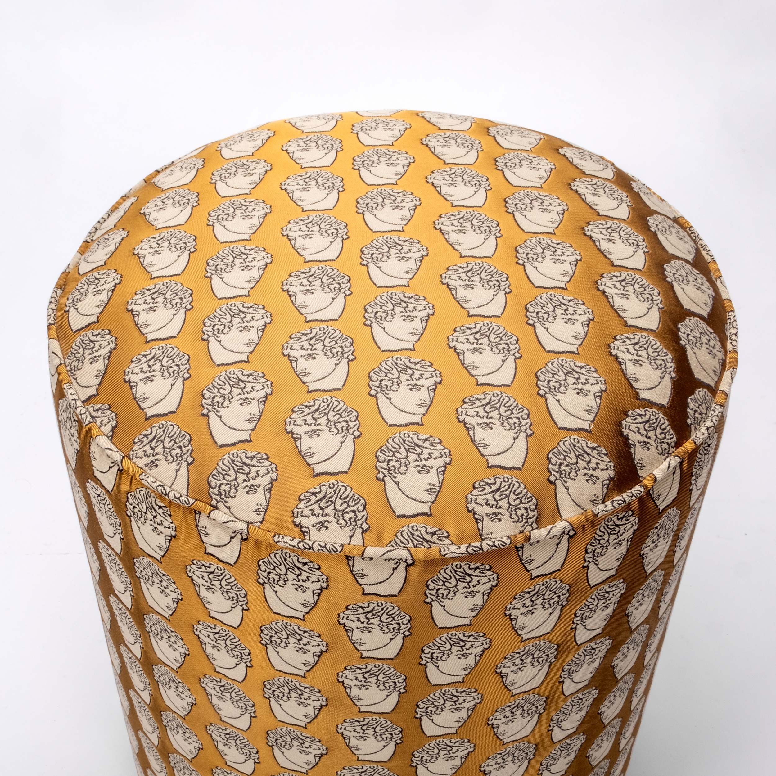 Made of a gold/mustard fabric with a shiny/matte contrast, this ottoman is full of character and joy. It is perfect for an extra seat at the table or to make it the eye-catcher in the room.