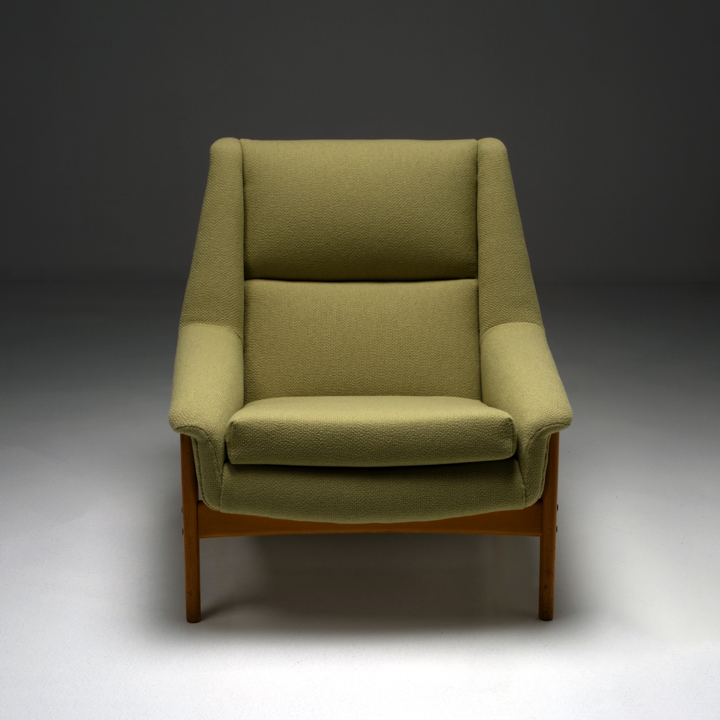 The ‘Profile’ armchair by Folke Ohlsson for DUX is an iconic example of mid-century Scandinavian design. Introduced in the 1950s, the chair features a sleek teak frame with elegantly sculpted armrests and a refined, organic silhouette. The combination of clean lines and all-over upholstery characterizes Ohlsson’s signature blend of comfort and modern simplicity.