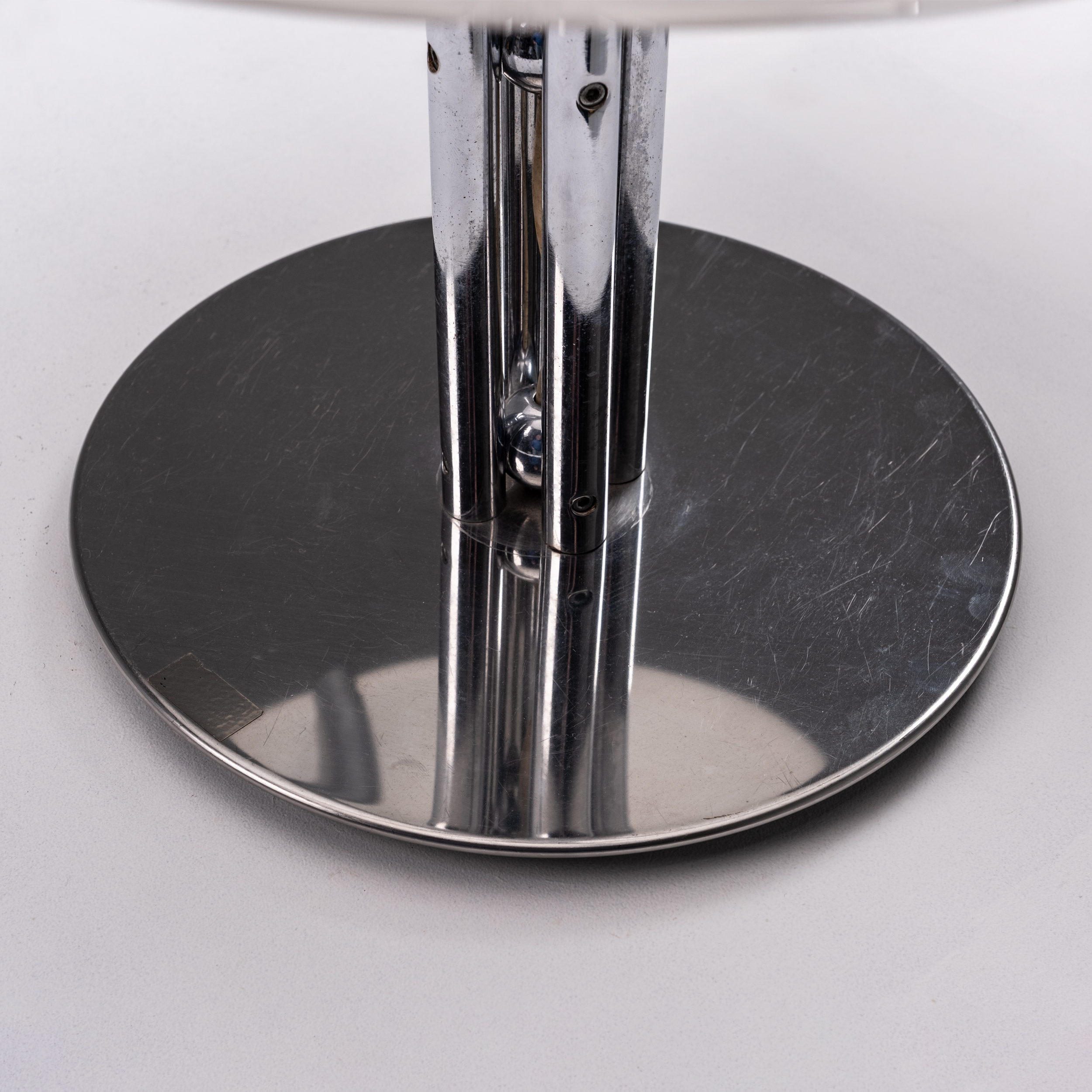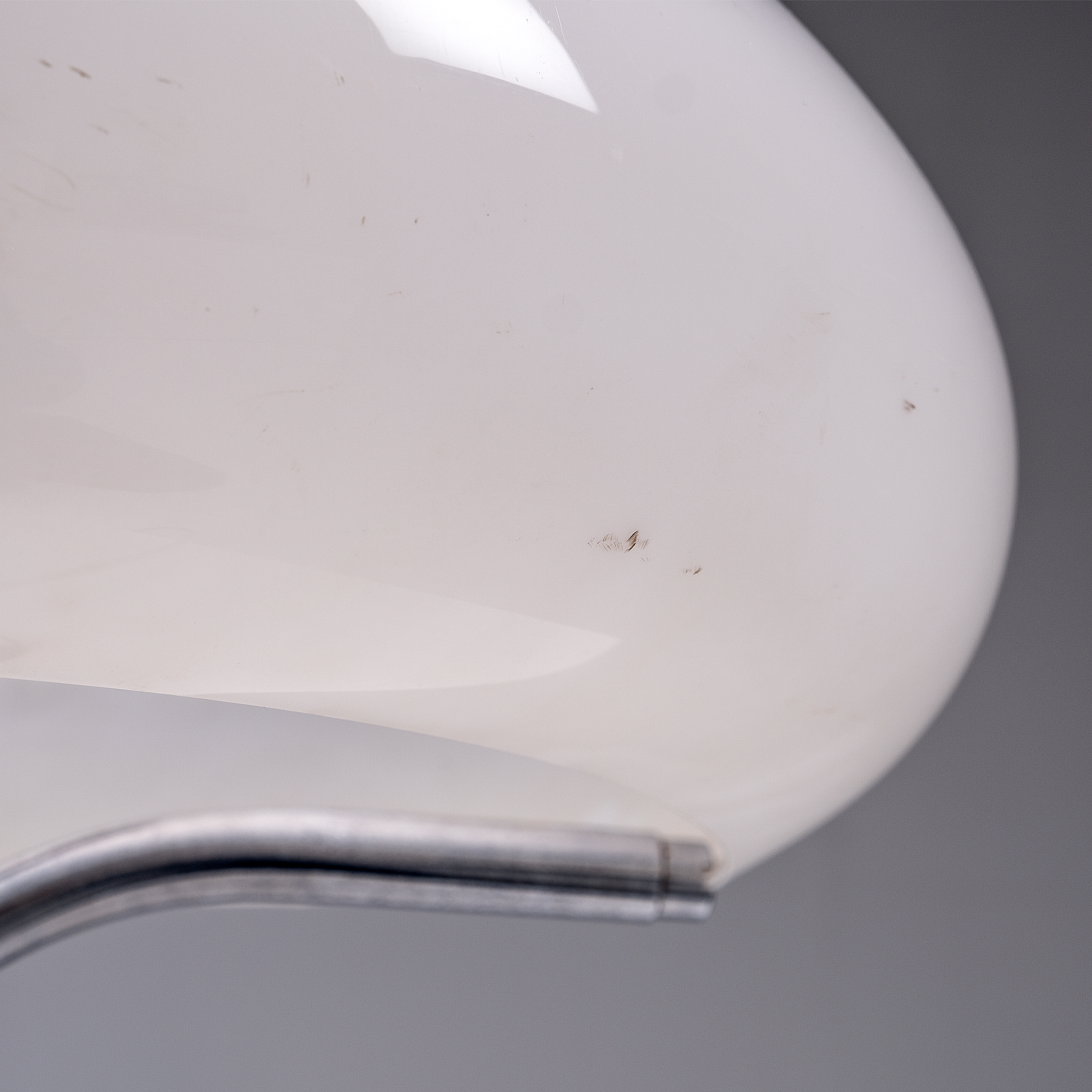Perfect for a bedside table, reading corner, or as a striking accent piece, this lamp is more than illumination, it’s a design statement that radiates optimism and style.The lamp is in very good vintage condition. There are a few small black streaks visible on the white shade. It has no brand or sticker, but does have a mark where a sticker used to be. The frame shows light signs of use consistent with age, but nothing that detracts from its overall appearance or functionality.