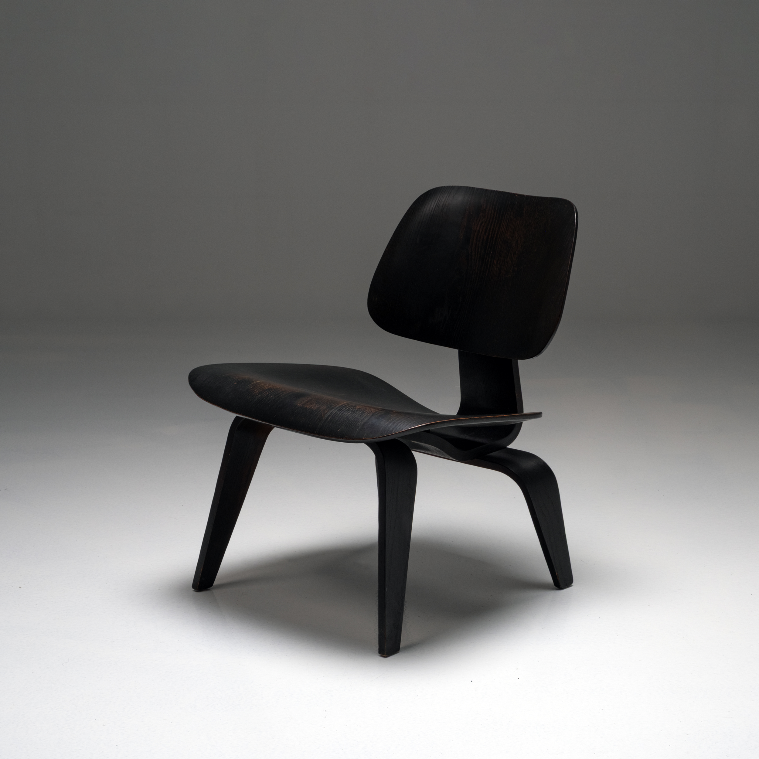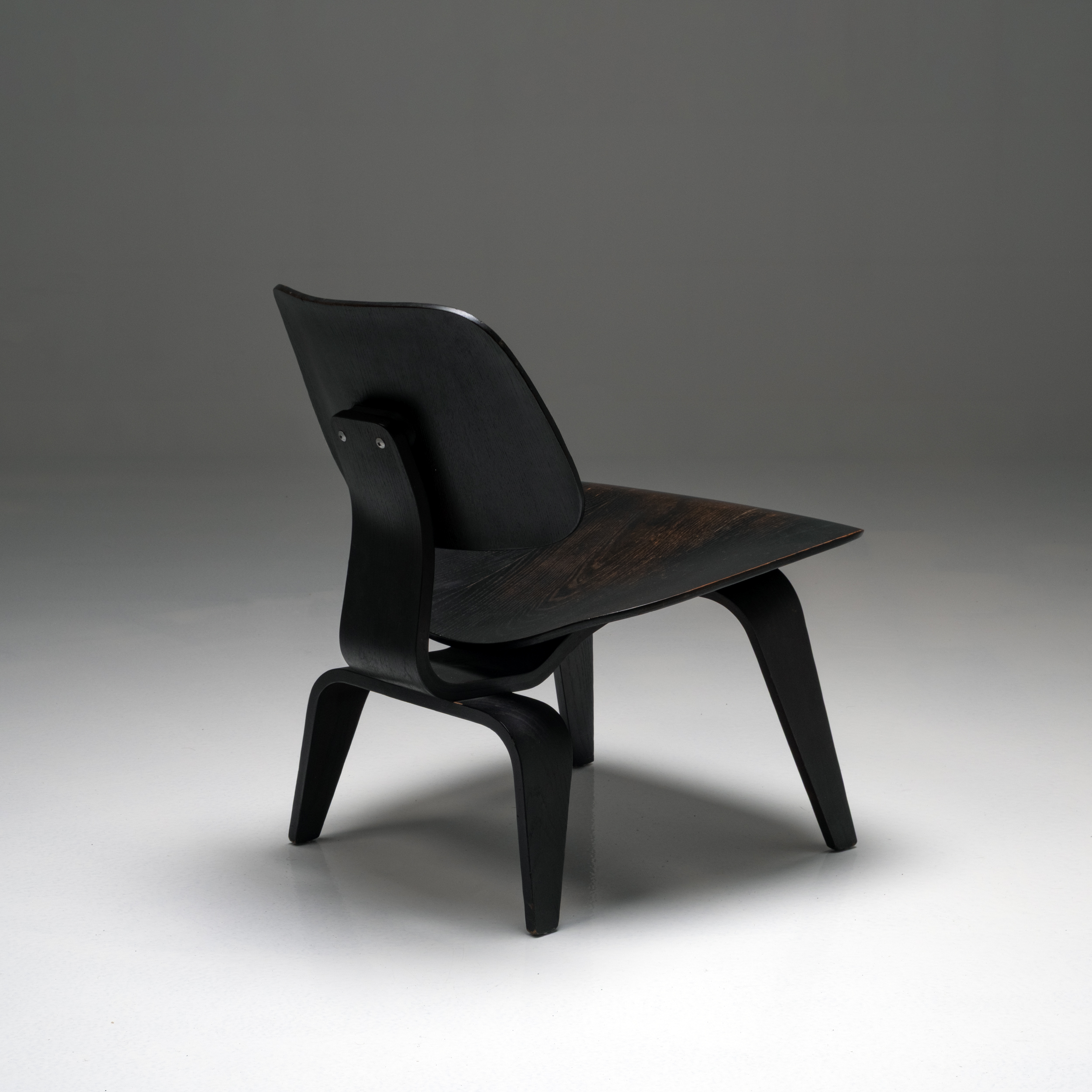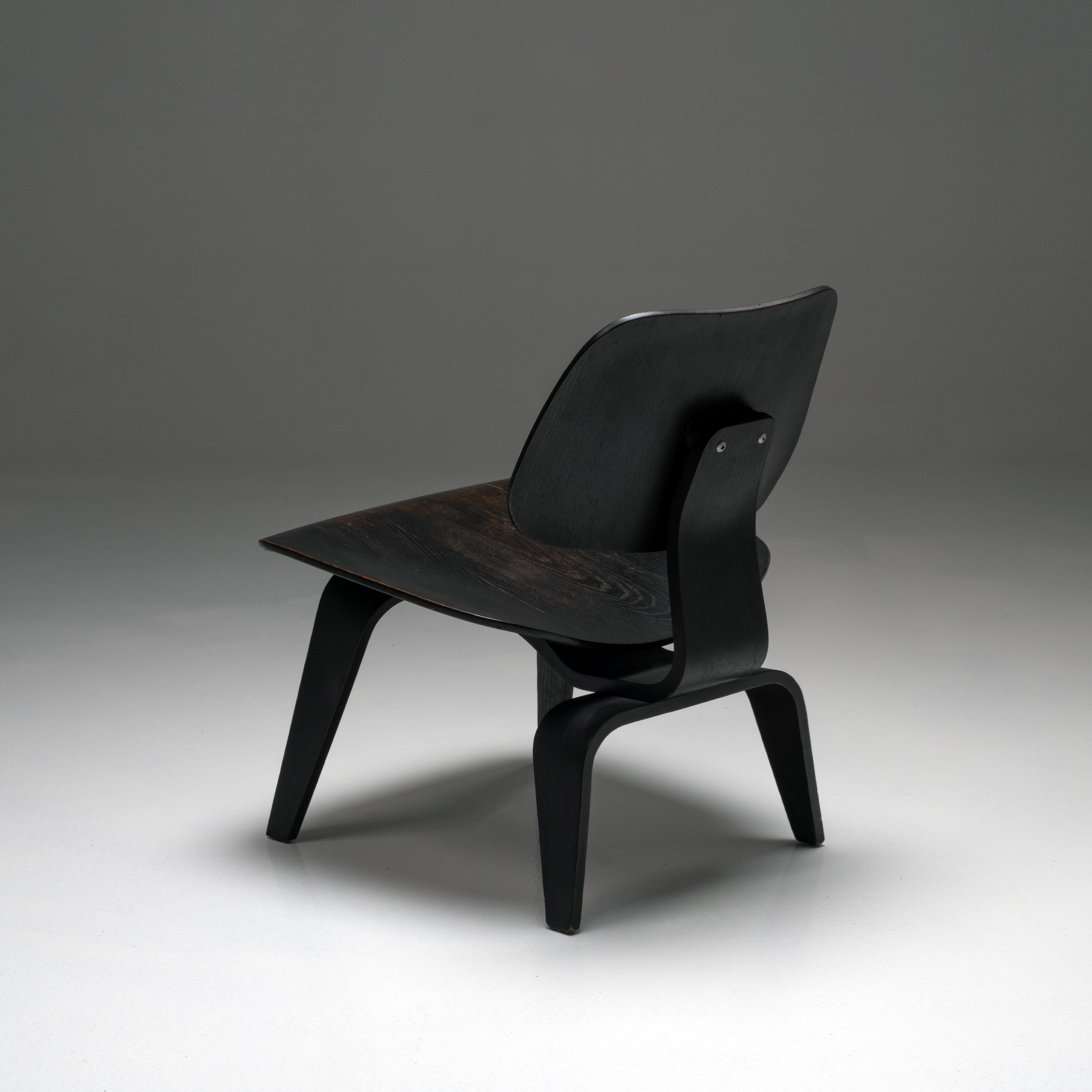 This original 1950s example, produced by Herman Miller, features beautifully aged black-stained wood with a subtle, natural patina that enhances its warmth and authenticity. The seat and backrest retain their graceful molded contours, while the plywood’s gentle sheen reflects decades of careful preservation. Structurally sound and aesthetically rich, it captures the timeless harmony between material, technique, and form.