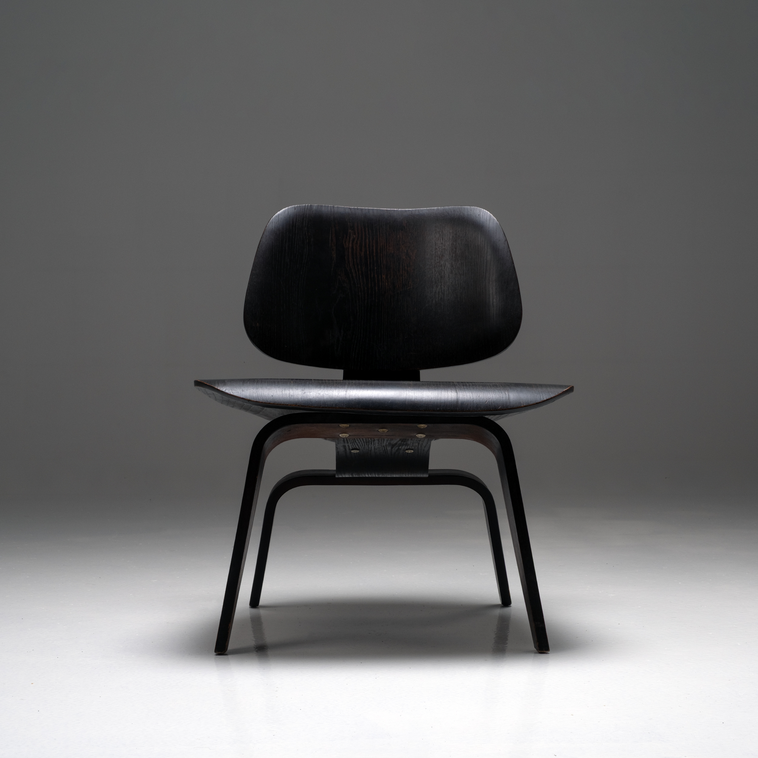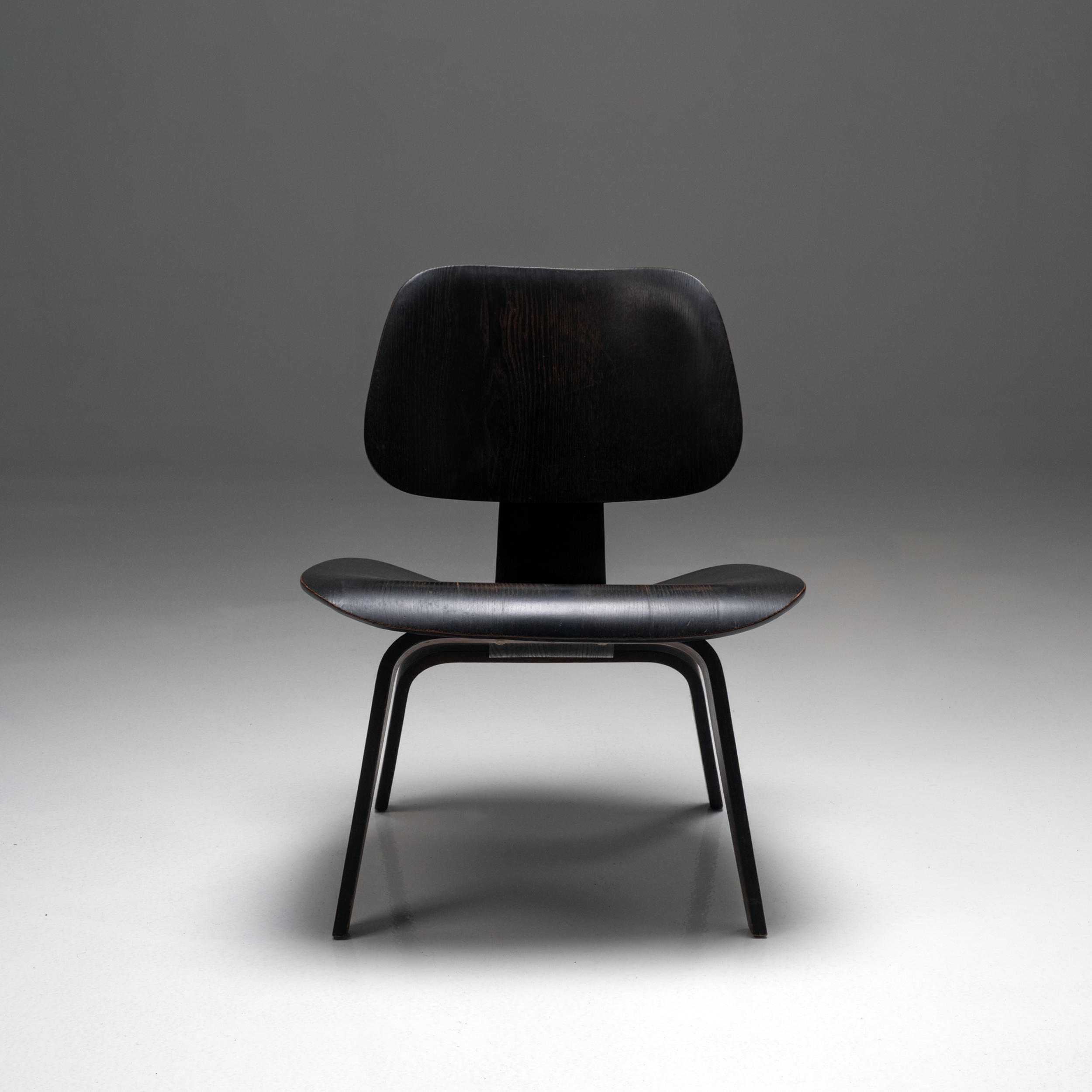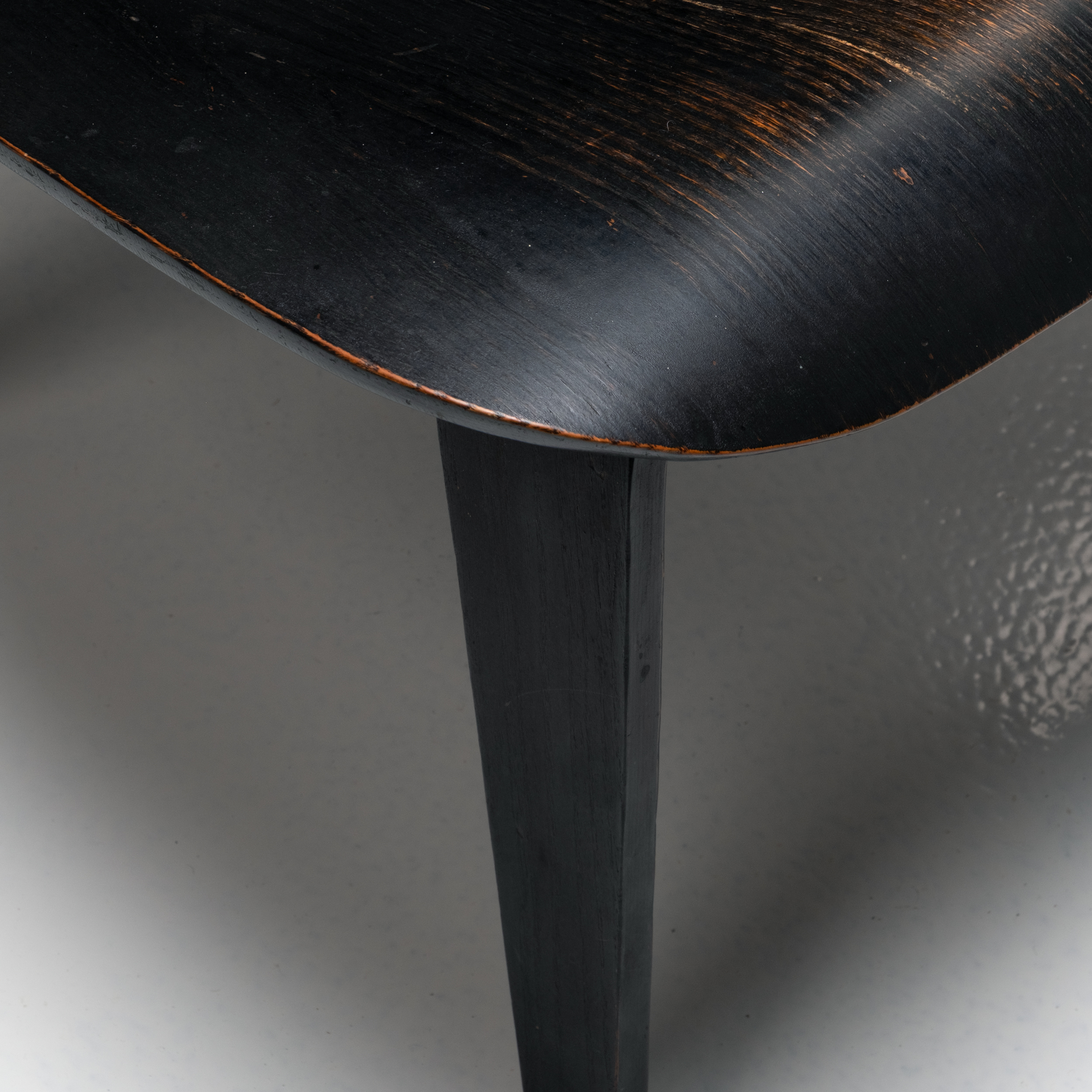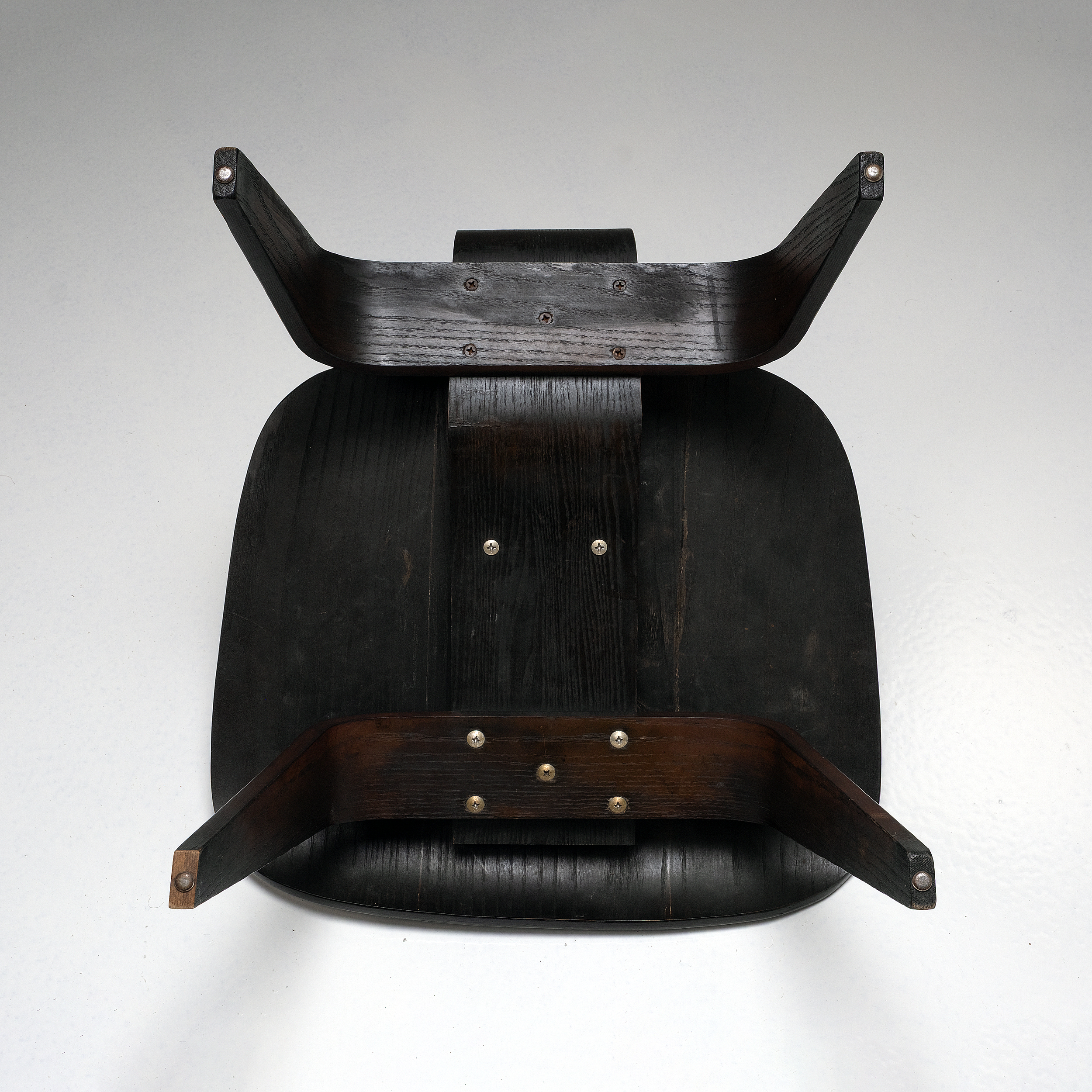This original 1950s example, produced by Herman Miller, features beautifully aged black-stained wood with a subtle, natural patina that enhances its warmth and authenticity. The seat and backrest retain their graceful molded contours, while the plywood’s gentle sheen reflects decades of careful preservation. Structurally sound and aesthetically rich, it captures the timeless harmony between material, technique, and form.