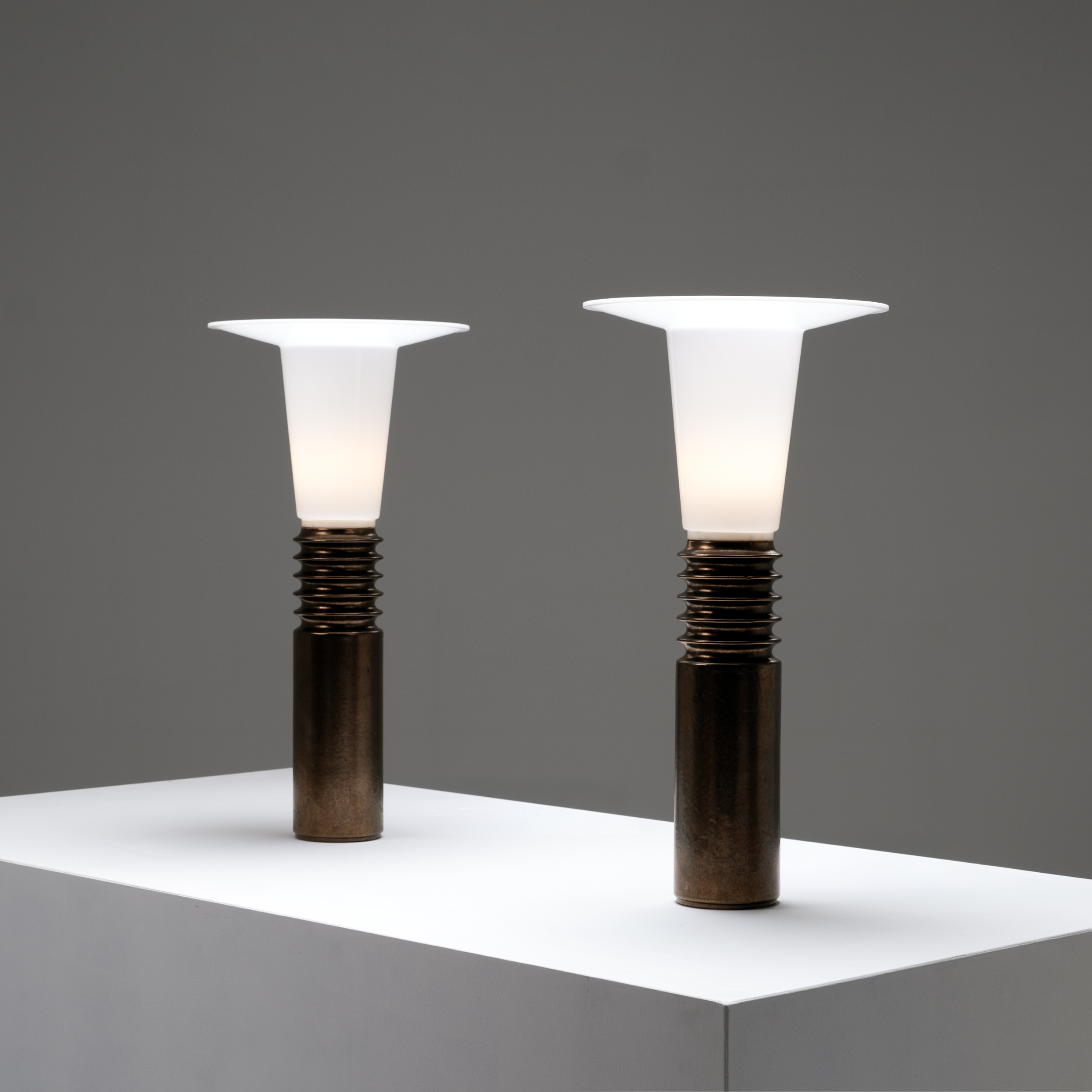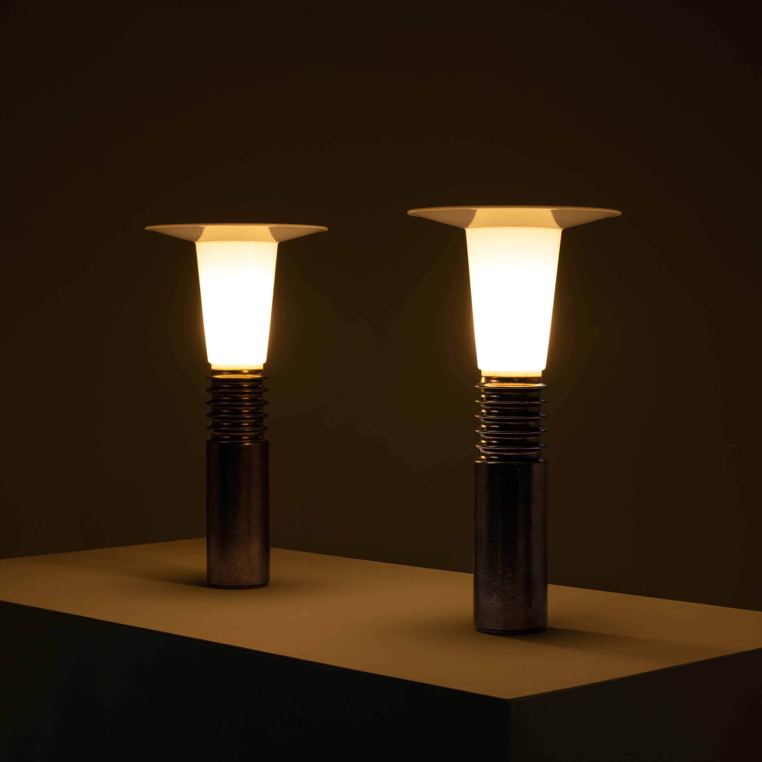 These sculptural and highly distinctive lamps perfectly capture the forward-thinking spirit of Scandinavian design from the late modernist era, where form, material, and light are reduced to their purest expression.